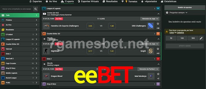 O eebet oferece uma grande seleção de opções de apostas em e-sports com probabilidades competitivas
